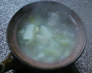 加入山药和冬瓜,小火再炖20分钟,最后根据自己口味加入少许盐和鸡精