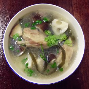 将莲藕、香菇和海带丝放入锅中,再继续炖煮20分钟即可~