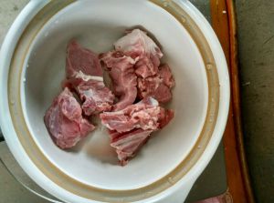 排骨用清水泡一个小时,洗净放入汤钵