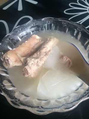 炖煮1个小时左右,放入山药段 继续炖煮1个小时,汤成白色即可!