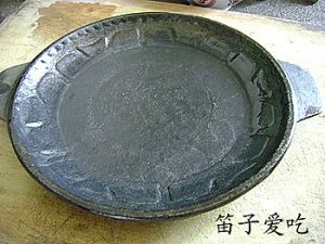 锅里留一点油,把蒜片爆香,倒入肉馅,放入酱油、盐、鸡粉、均匀炒熟后,倒入一大勺水,炒好的肉馅连同汤一齐浇在铁板上,再滴入一点蚝油,烧一会儿,关火,撒上小葱末