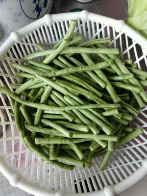 豇豆这么长 (大概10公分)洗净控水 茄子也这么长(大概手指粗的长条)洗净控水
