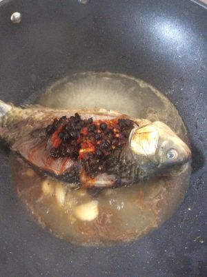 放入点水闷,这时候放点老干妈,剁辣椒。两边翻一下闷会。鱼入剁辣椒味道更加美味!