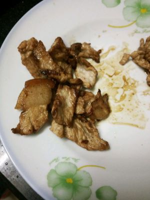 热锅加油,待油热后,倒入蒜,肉片爆香盛出