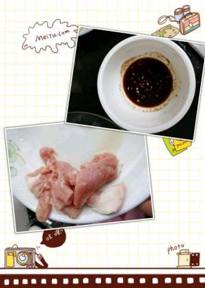 肉丝洗净切片,待用:糖和醋.盐按比例调匀