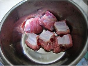 排骨洗净,焯一下,时间允许的话也可以用高压锅压一下,肉会烂一些。