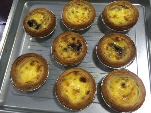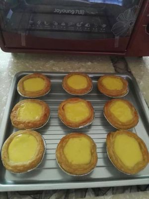 好了,美味蛋挞做好啦。蛋挞可以根据个人口感缩短或延长制作时间,也可依照个人口味加入果酱制成水果蛋挞喔~嘻嘻...