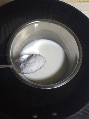 牛奶加砂糖隔水搅化