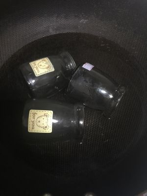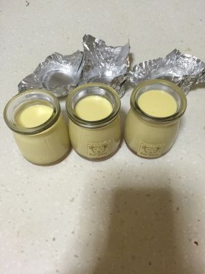 将准备好的杯子放进锅里开中火蒸十~十五分钟(有条件的话用锡纸封口在蒸,据说不会有水走进瓶子里)开锅取出瓶子待凉就可以放冰箱里了。冻过后口感更好味