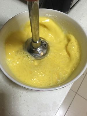 用手动打蛋器充分搅拌均匀,即成蛋奶浆。