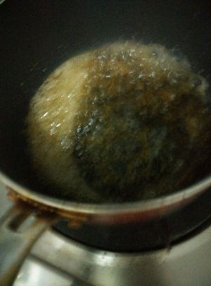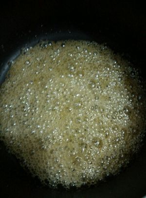 特意做了个拼图,从1-4看变化。锅里水和糖烧开后,转小火将糖煮的都是泡泡。泡泡越来越多,仔细观察,开始变褐色时,立即关火,立即带防烫手套放20克水。此步骤要特别小心。