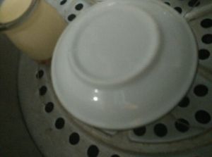 放入蒸锅,上面可以覆盖保鲜膜或者扣个盘子。这样水汽不会滴到布丁上面。
