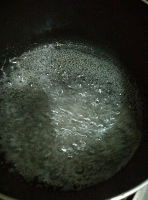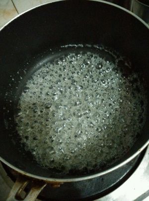 取一个小锅放冷水和糖,热水准备在手边,先不要放。开火,水烧开后转小火。