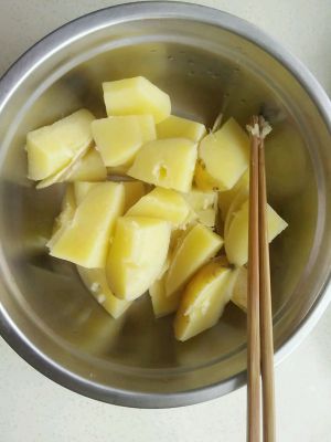 土豆洗净,切小块,上蒸锅蒸15--20分钟。