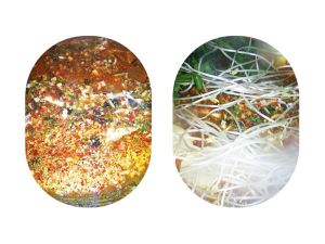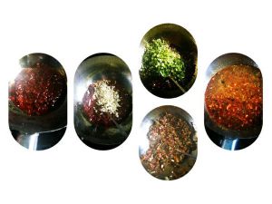 如图所示, 撒上孜然粉,辣椒面 和色拉油