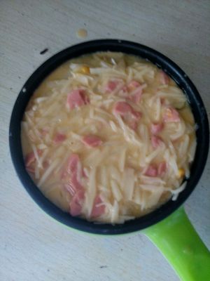 把搅拌好的食材加入锅里,大小自定,我的是煎蛋的小锅,刚刚好一锅