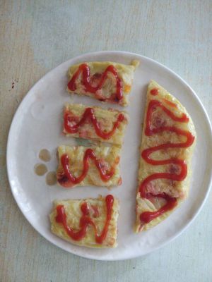 起锅切小块,加一点自己喜欢的酱,我加的是番茄酱,可不加