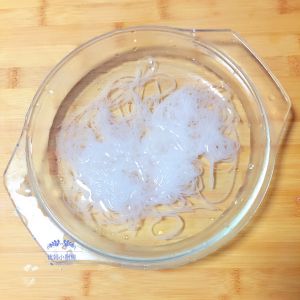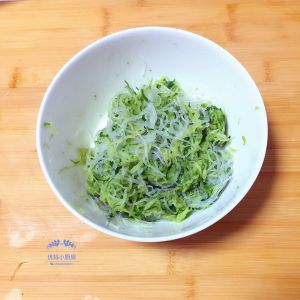 将粉丝剪成小段拌入萝卜丝中。