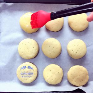 在饼上刷蛋液,均匀地撒上芝麻,烤箱预热200度20分钟。