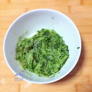 萝卜刨成细丝加盐、水和面粉搅拌均匀。