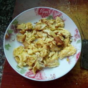 4. 锅中油热,下鸡蛋滑散,盛起备用。