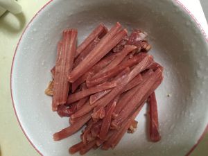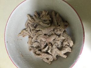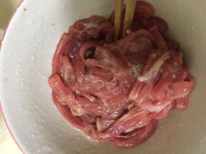 肉切丝,加料酒、盐、淀粉抓匀,上浆。