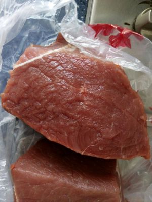 锅中放油翻炒肉丝(肉丝被我切成肉片了 囧)变色出锅备用