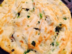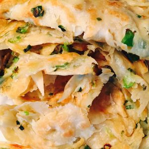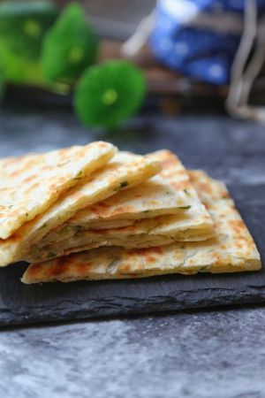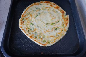 饼铛或平底锅涂抹一薄层油。饼放进去小火烙制。