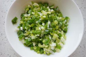 在上面盖上一张饺子皮,继续刷油,撒少许盐和葱花重复步骤3至4次^_^