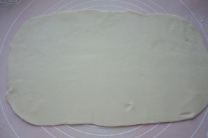 用擀面杖擀薄成一张大饼(用圆形饺子皮更好)^_^