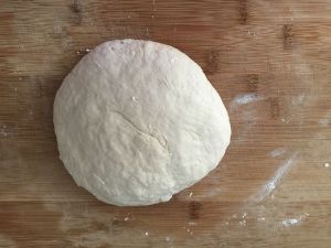 努力揉成光滑的面团,这可是个体力活!开始很粘手,揉着揉着就能成团,且渐渐光滑。作为第一次做的菜鸟,实在对面粉很无感,捣鼓了很久!总算成团啦哈哈