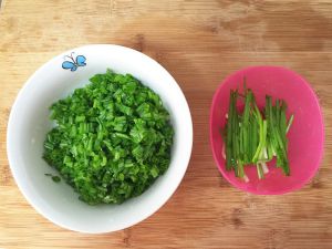 小葱洗净,切段和切末备用!喜欢吃葱,所以准备了很多!