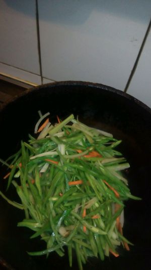 胡萝卜洗净切丝,放开水里焯水,捞出。