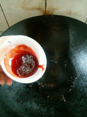 锅里放点油,加水、糖、醋、蕃茄沙司、鸡精烧开,勾芡,倒入炸好的里脊拌匀。