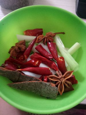倒入清水至水没过所有食材放入两颗八角煮5-8分钟