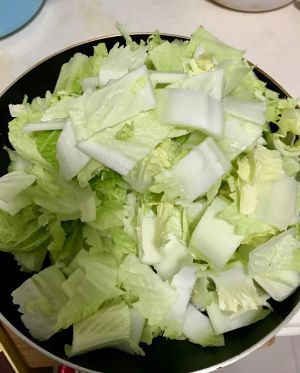 大白菜洗净切好,可以切大段点,便于炖煮。