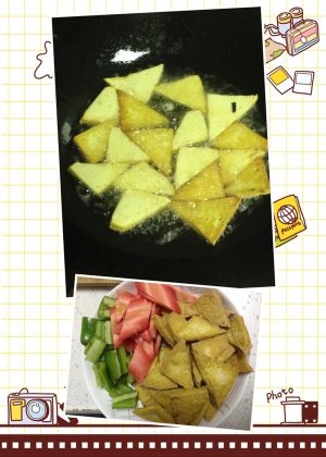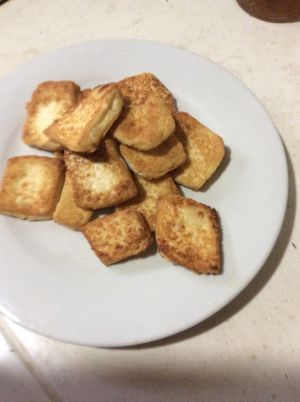 豆腐切片下油锅煎。