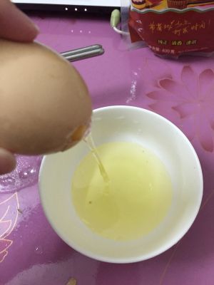 蛋清用筷子打散,再把奶倒进去搅拌均匀。