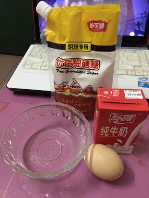 蛋清跟蛋白分离,然后蛋清加入砂糖,不停的搅拌均匀。然后把牛奶倒入蛋清一起混合搅拌。