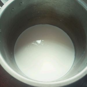 鲜牛奶煮沸,加入30g砂糖 煮至融掉