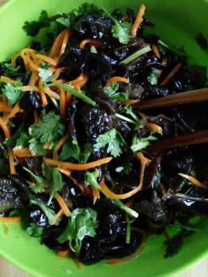 黑木耳用清水泡发后,焯水,捞起来后再用凉水过一遍,这样口感很脆