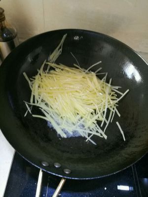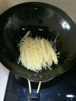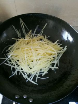 土豆丝切丝,放在清水里洗去淀粉,保持清脆的口感