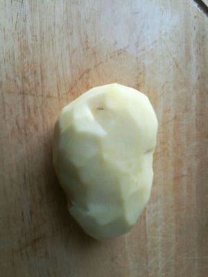 准备一枚土豆,削皮,洗净(由于找不到我家刨子所以用刀削的)