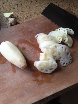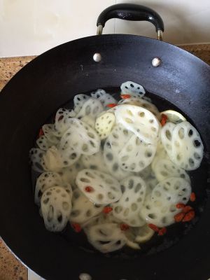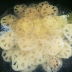 焯水 →_→锅里放些水,待水开后把藕放入锅里,煮2分钟左右,自己掌握刚熟就可以了,要保持它脆脆的口感哦