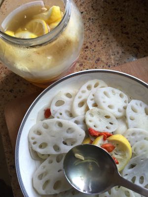 放入蜂蜜渍过的柠檬同清水一起烧开,满室飘香