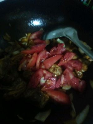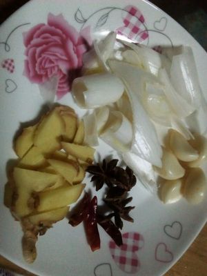 放入葱姜蒜辣椒八角,炒至八角爆出香味