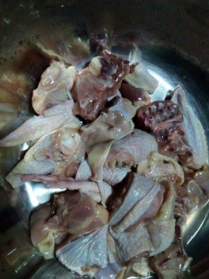 放入鸡肉翻炒,放入酱油,倒入啤酒一罐