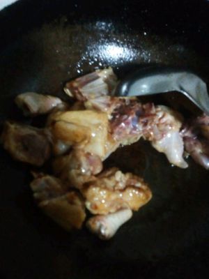 倒入鸡块翻炒,放入酱油、生抽、盐、白糖