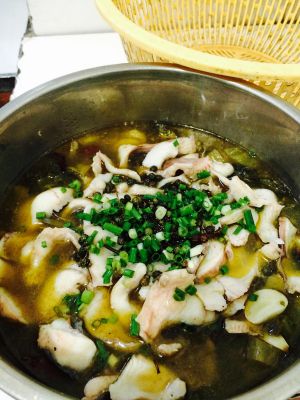 淋上炸好的花椒油,葱花,香气四溢的泡椒酸菜鱼就完成了,夏天开胃哦。
