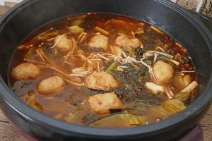 做法1:麻辣酸菜鱼片火锅